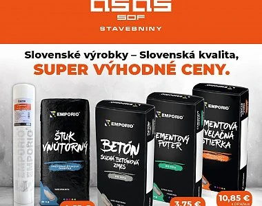 Leto je ideálny čas na stavebné práce, rekonštrukcie a úpravy vášho domova či exteriéru. V ASAS SOF Stavebniny sme si pre vás pripravili špeciálnu akciu na vybrané slovenské produkty EMPORIO, ktoré sú známe svojou spoľahlivosťou, kvalitou a výbornou spracovateľnosťou.